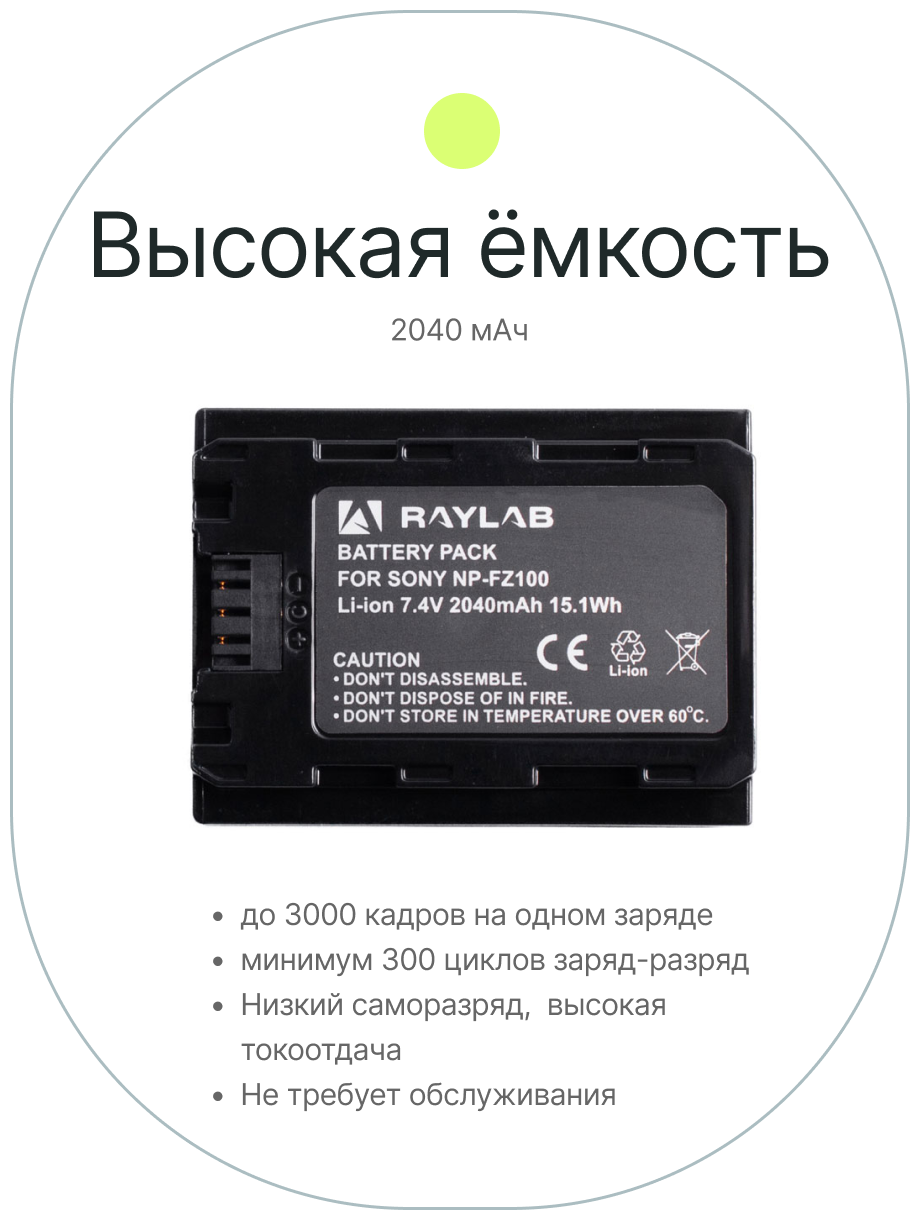 Аккумулятор Raylab RL-FZ100, для Sony A9/A7m3/A7Rm3/A7m4 информация: