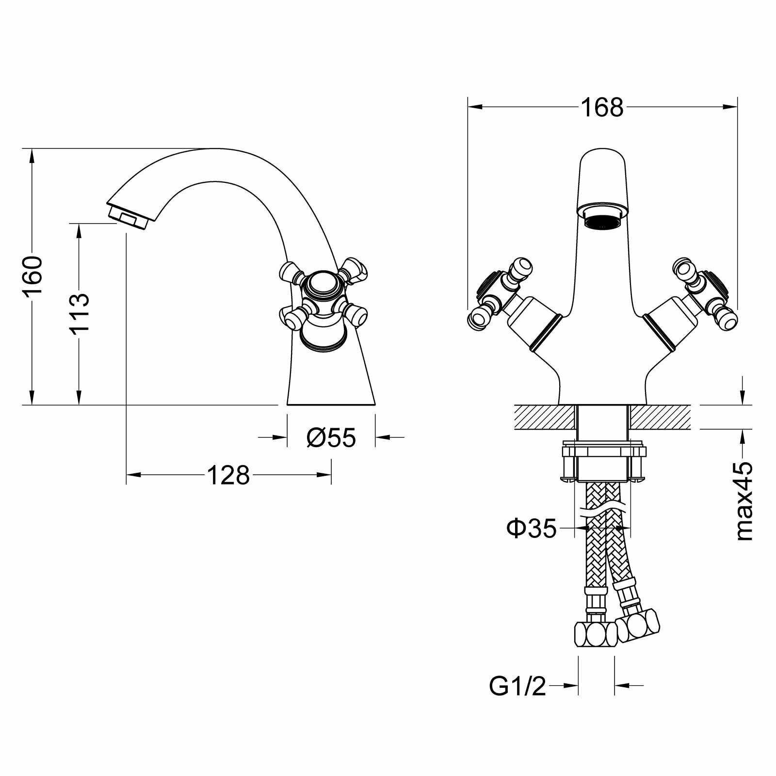 Смеситель на раковину настенный Эверест B46-350 с круглым поворотным изливом, кран-буксы 1/2", хром