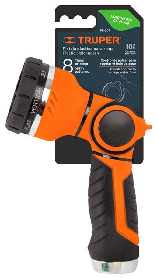 Пистолет для полива Truper / Трупер c коннектором, 8 режимов распыления, диаметр входного отверстия 3/4 / сад и огород