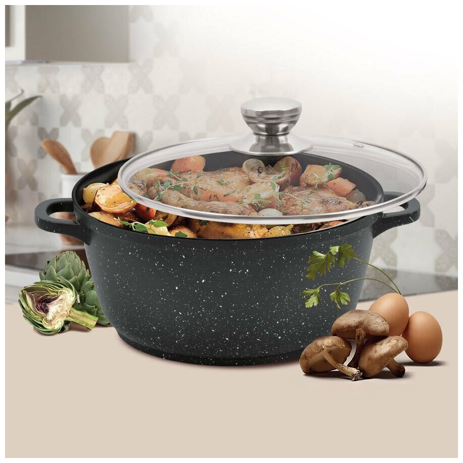 Кастрюля Маруся 7001-26к с индукционным дном со стеклянной крышкой, 5,5 л, цвет черный
