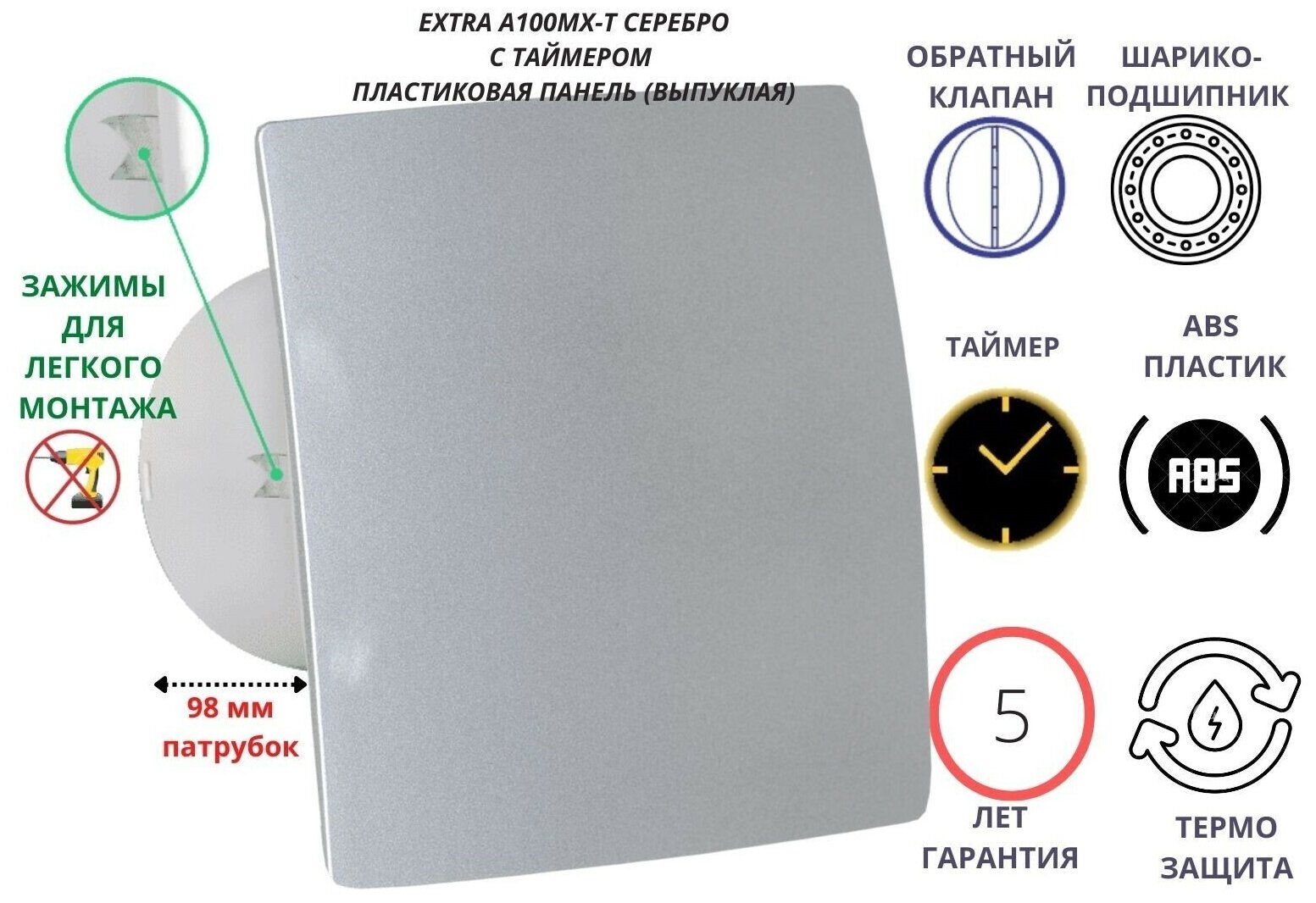 Отзывы на Вентилятор с таймером, D100мм, с пластиковой серебристой панелью, с обратным клапаном и креплением без сверления EXTRA A100МX-T, Сербия