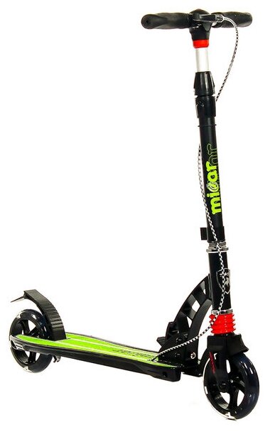 Детский самокат Micar Galaxy 145 двухколесный с ручным тормозом, складной с амортизатором и светящимися колёсами черно-зеленый
