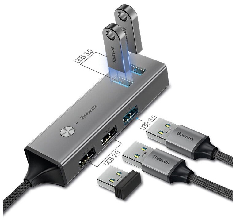 USB-концентратор Baseus round box USB HUB (CAHUB-F), разъемов: 4