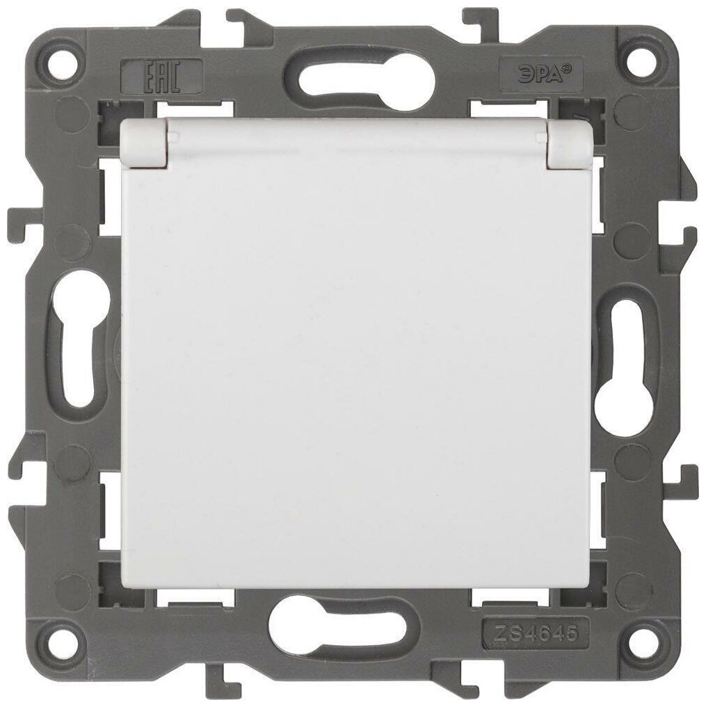 Розетка ЭРА Elegance 1м с заземлением, с крышкой 16A-250В, IP20 белая 14-2103-01, Б0034278