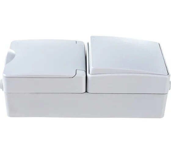 ЭРА Блок Эксперт 11-7602-03 накладной IP65 16А(10AX) 250В серый горизонтальный розетка с выключателем двухклавишн