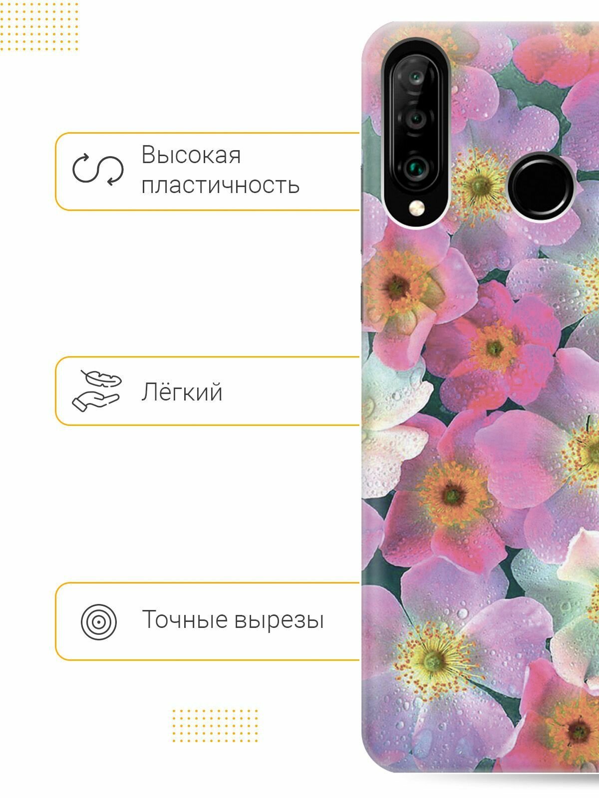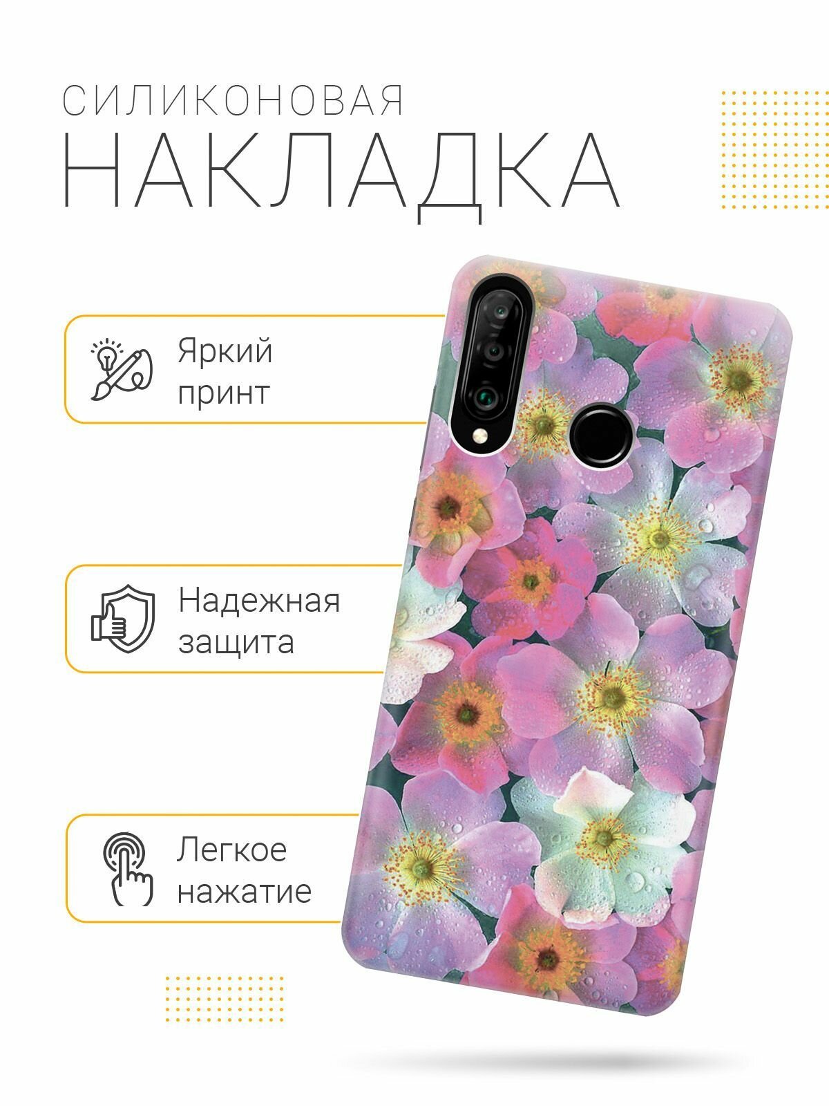 Силиконовый чехол на Honor 20 Lite / 20s / Huawei P30 Lite / Хуавей П30 Лайт / Хонор 20 Лайт / 20s с принтом "Розовые фиалки" информация: