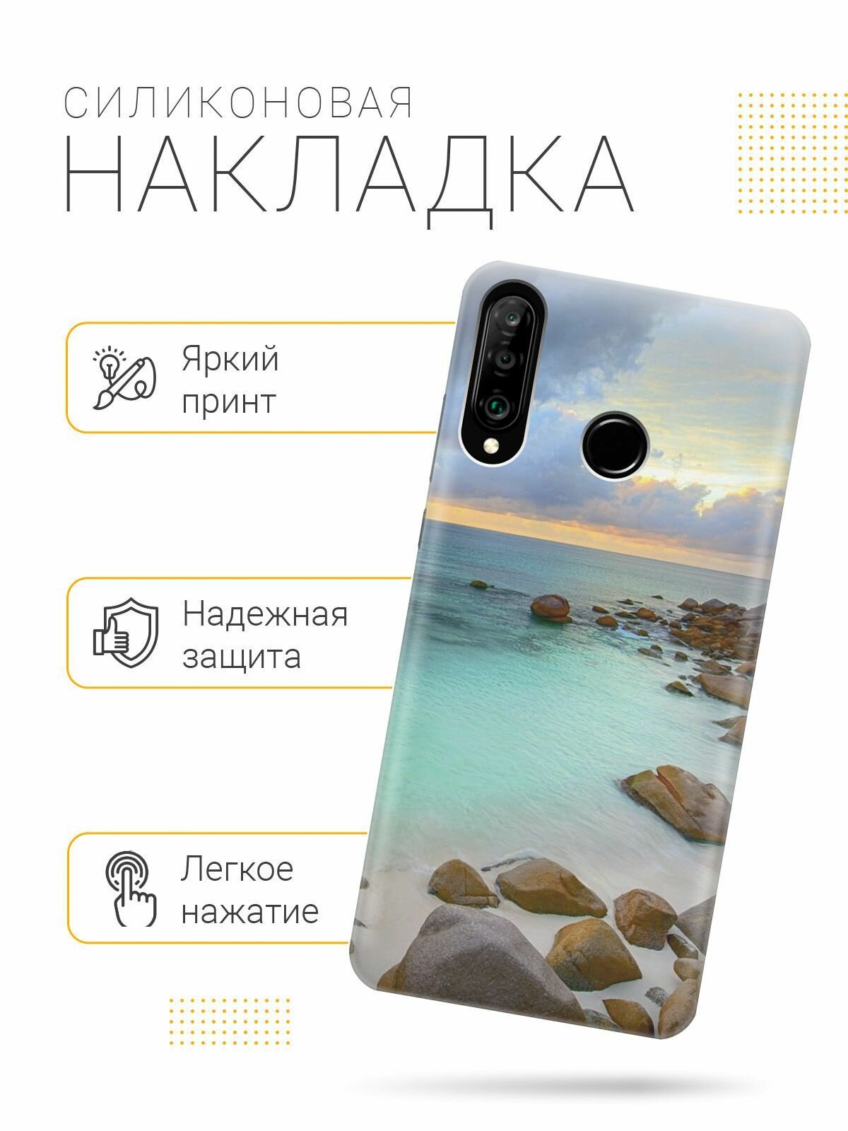 Силиконовый чехол на Honor 20 Lite / 20s / Huawei P30 Lite / Хуавей П30 Лайт / Хонор 20 Лайт / 20s с принтом "Каменистый пляж" информация: