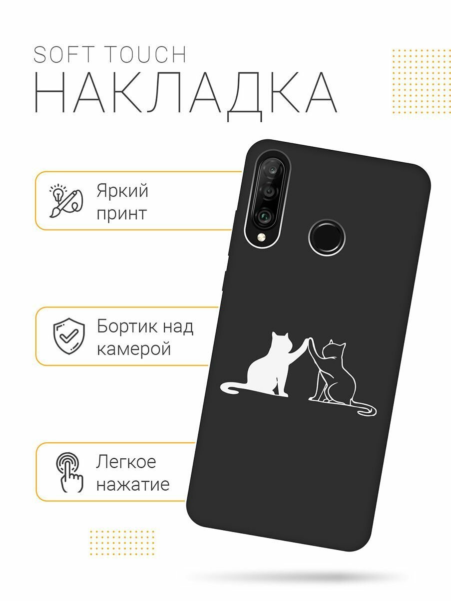 10 цен на Матовый Soft Touch силиконовый чехол на Honor 20 Lite / 20s / Huawei P30 Lite / Хуавей П30 Лайт / Хонор 20 Лайт / 20s с 3D принтом "Cats W" черный