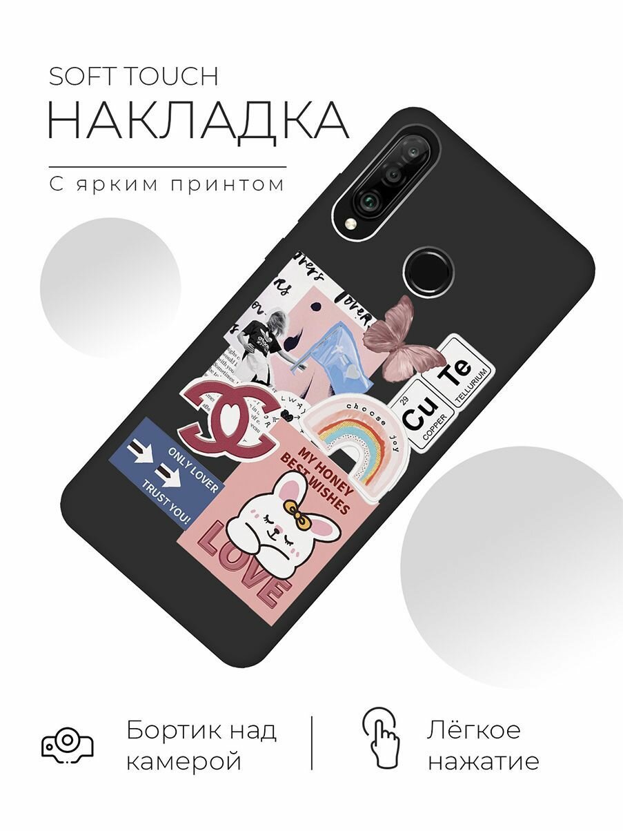 Матовый чехол Cute Stickers для Honor 20 Lite / 20s / Huawei P30 Lite / Хуавей П30 Лайт / Хонор 20 Лайт / 20s с 3D эффектом черный информация: