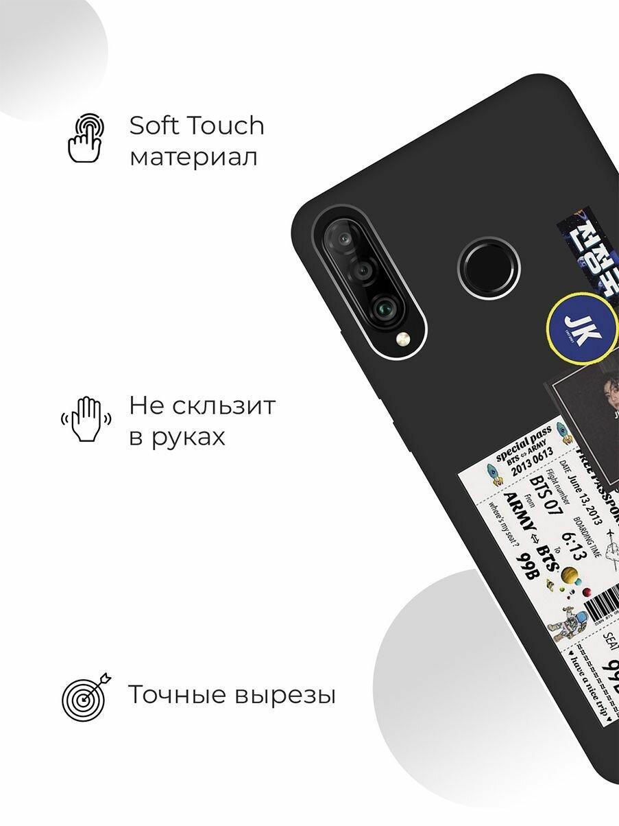Матовый чехол BTS Stickers для Honor 20 Lite / 20s / Huawei P30 Lite / Хуавей П30 Лайт / Хонор 20 Лайт / 20s с 3D эффектом черный информация: