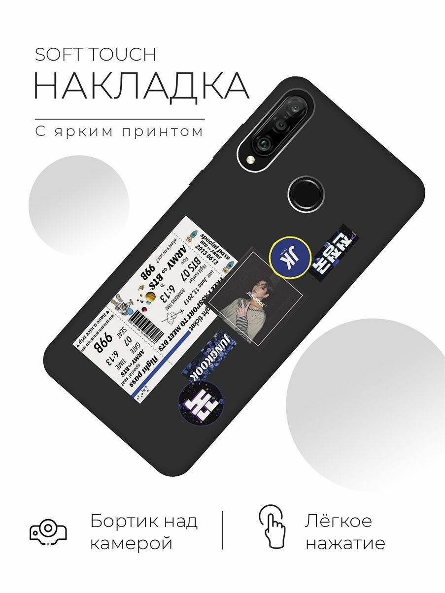 10 цен на Матовый чехол BTS Stickers для Honor 20 Lite / 20s / Huawei P30 Lite / Хуавей П30 Лайт / Хонор 20 Лайт / 20s с 3D эффектом черный