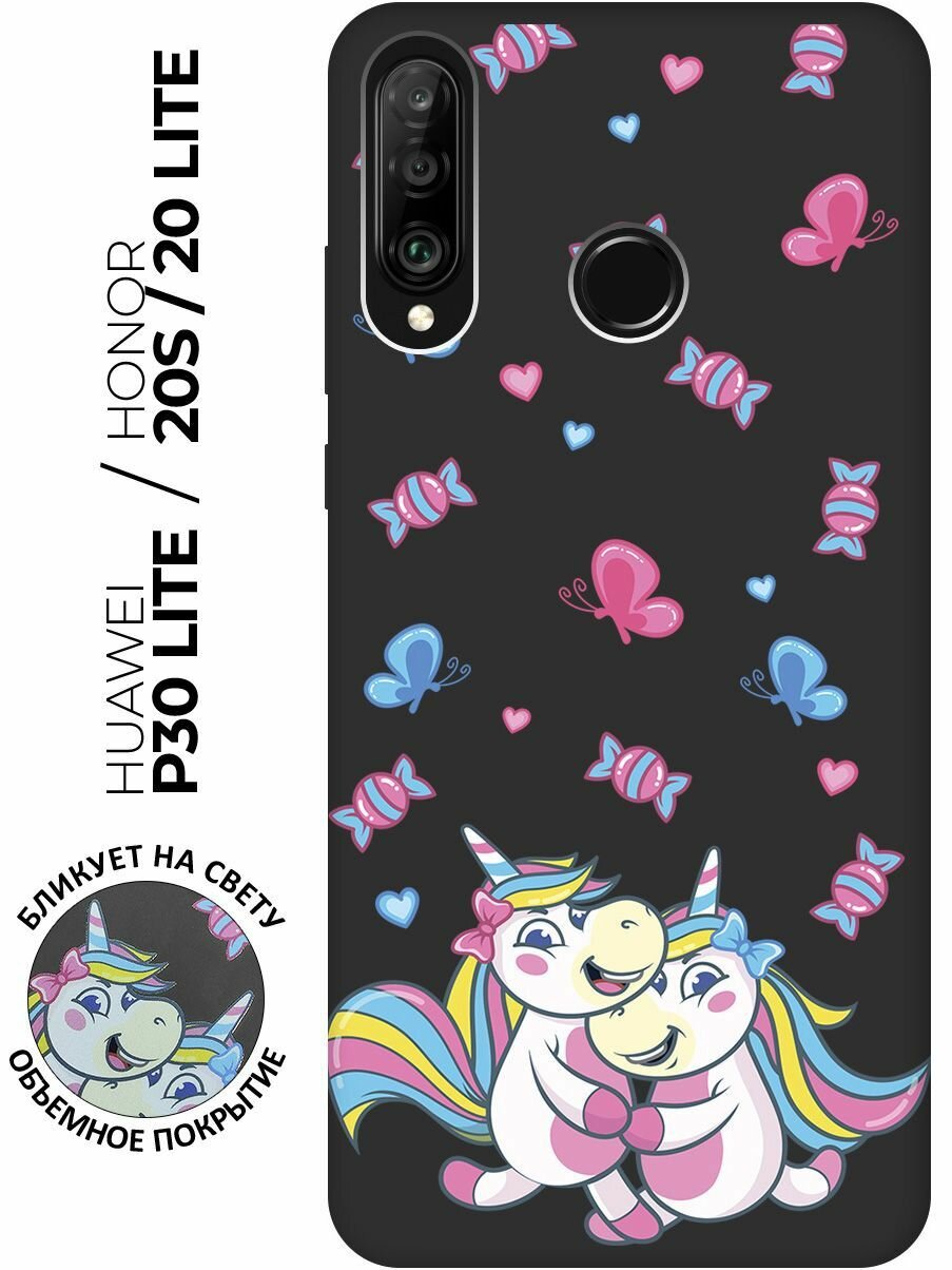 Матовый чехол Unicorns and Candies для Honor 20 Lite / 20s / Huawei P30 Lite / Хуавей П30 Лайт / Хонор 20 Лайт / 20s с 3D эффектом черный информация: