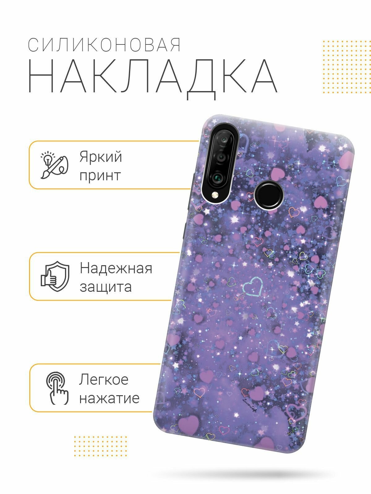 Отзывы на Силиконовый чехол на Honor 20 Lite / 20s / Huawei P30 Lite / Хуавей П30 Лайт / Хонор 20 Лайт / 20s с эффектом блеска "Магические сердечки"