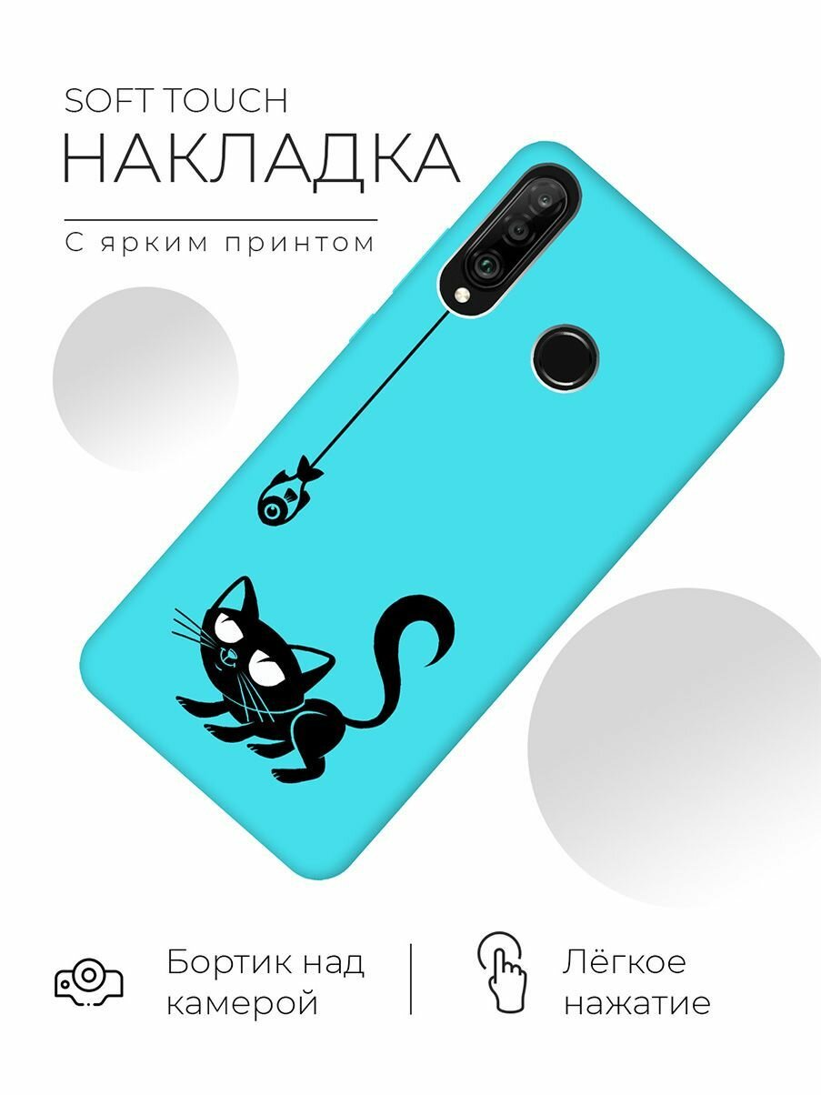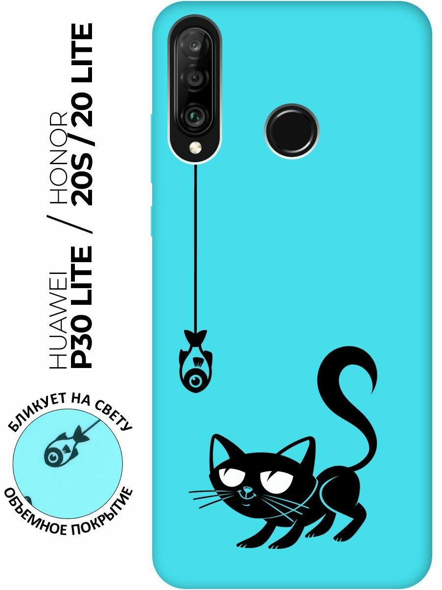 Матовый чехол Scratchy and fish для Honor 20 Lite / 20s / Huawei P30 Lite / Хуавей П30 Лайт / Хонор 20 Лайт / 20s с 3D эффектом бирюзовый информация: