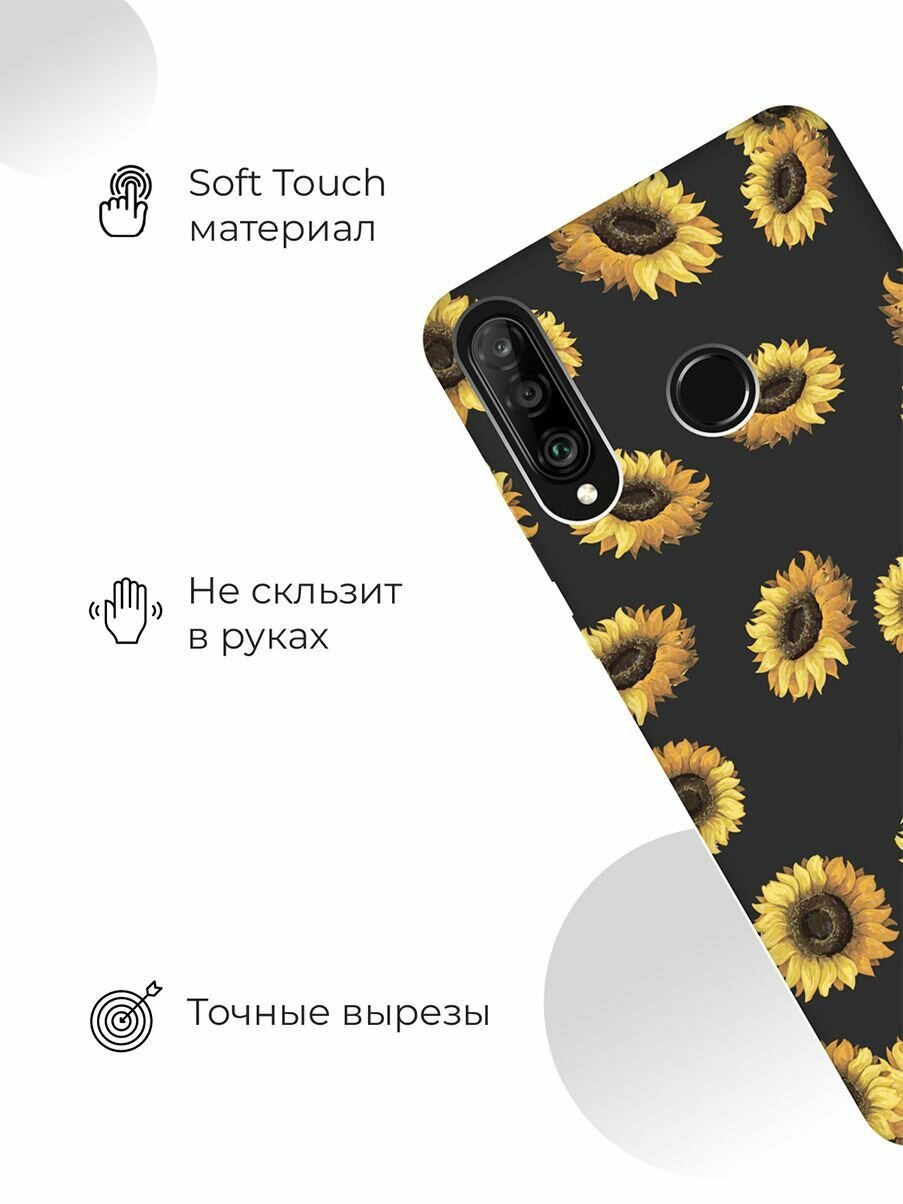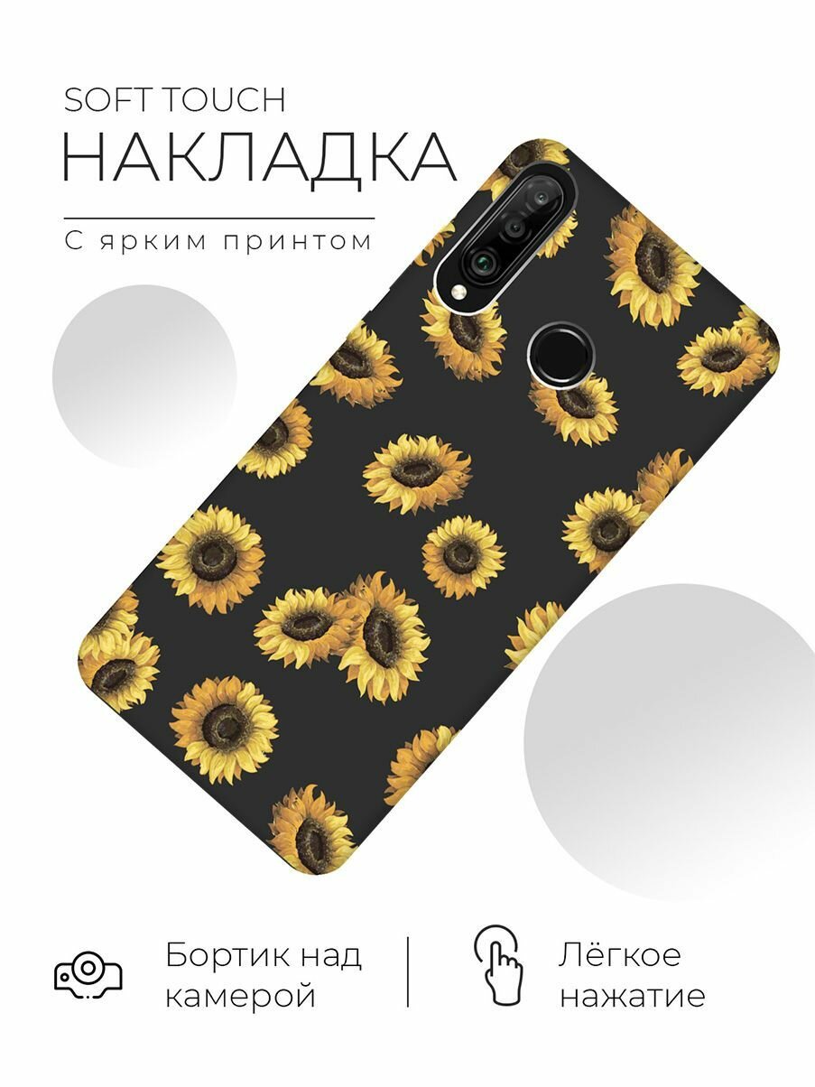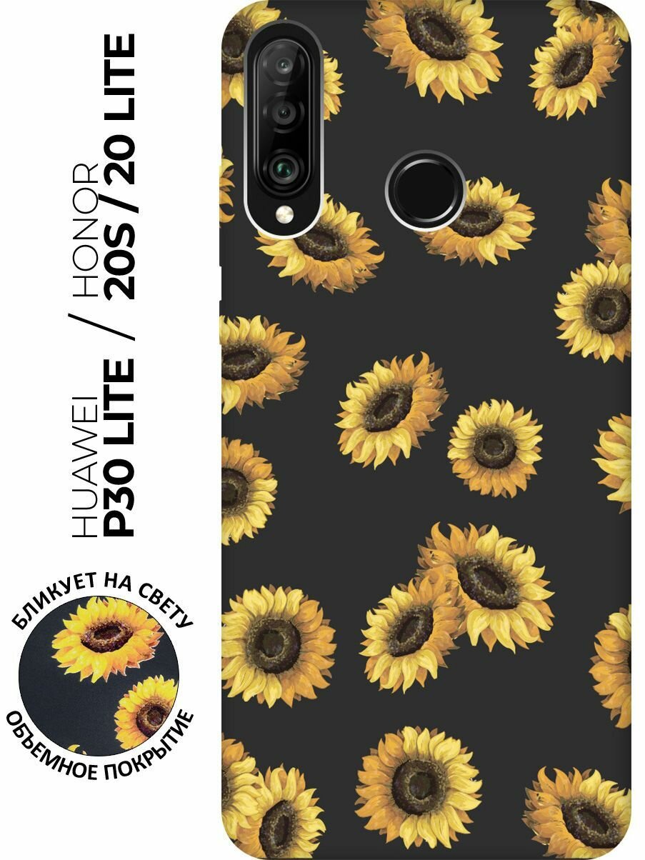 Матовый чехол Sunflowers для Honor 20 Lite / 20s / Huawei P30 Lite / Хуавей П30 Лайт / Хонор 20 Лайт / 20s с 3D эффектом черный информация: