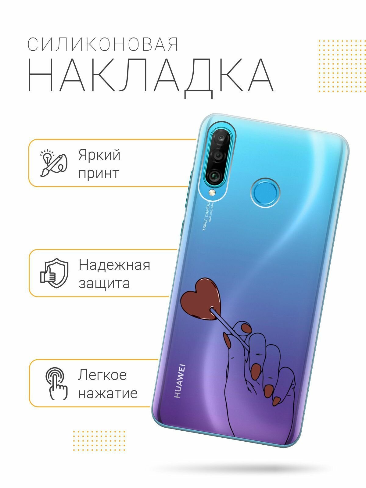 Отзывы на Силиконовый чехол на Honor 20 Lite / 20s / Huawei P30 Lite / Хуавей П30 Лайт / Хонор 20 Лайт / 20s с 3D принтом "Heartbreaker" прозрачный