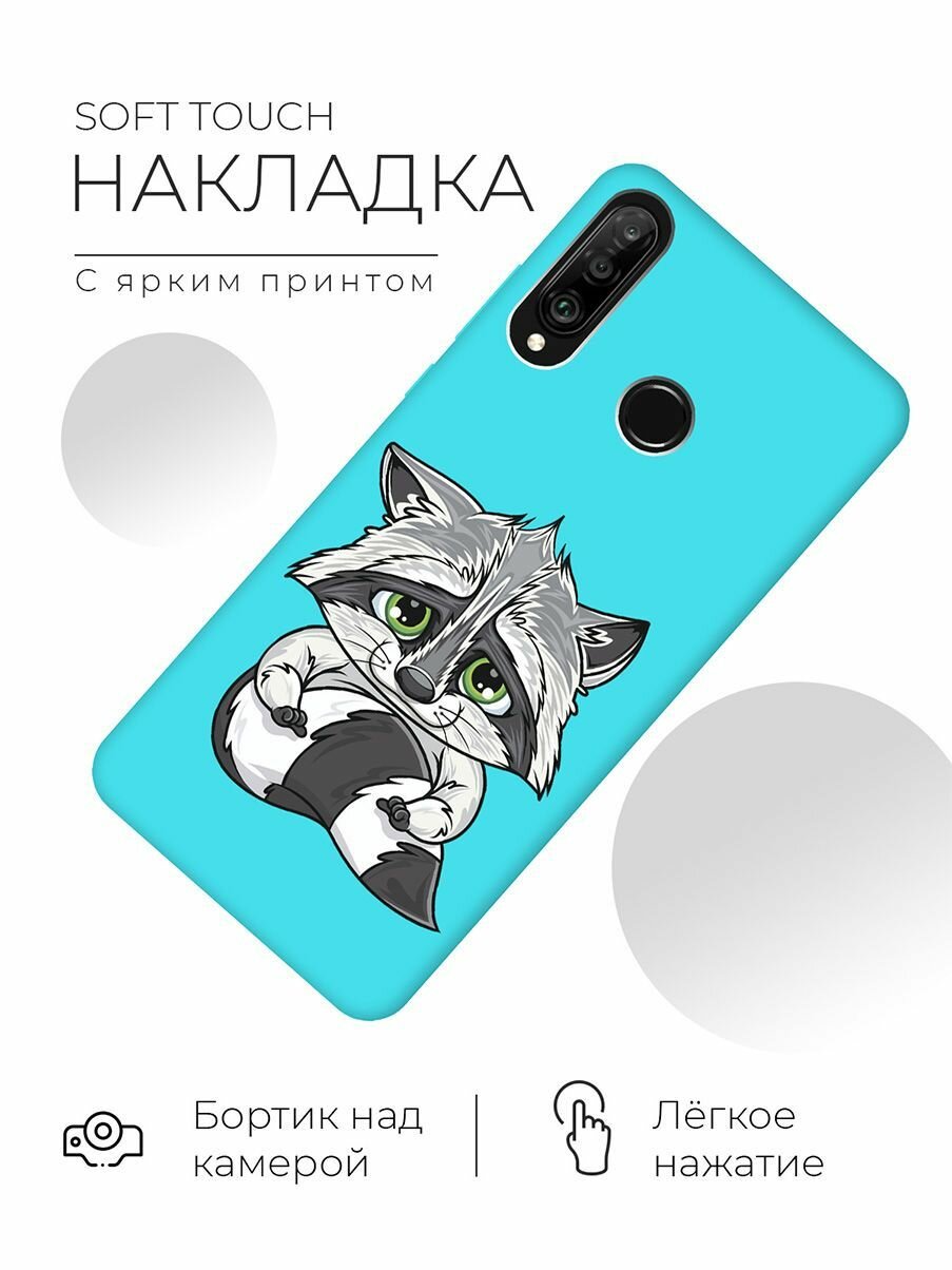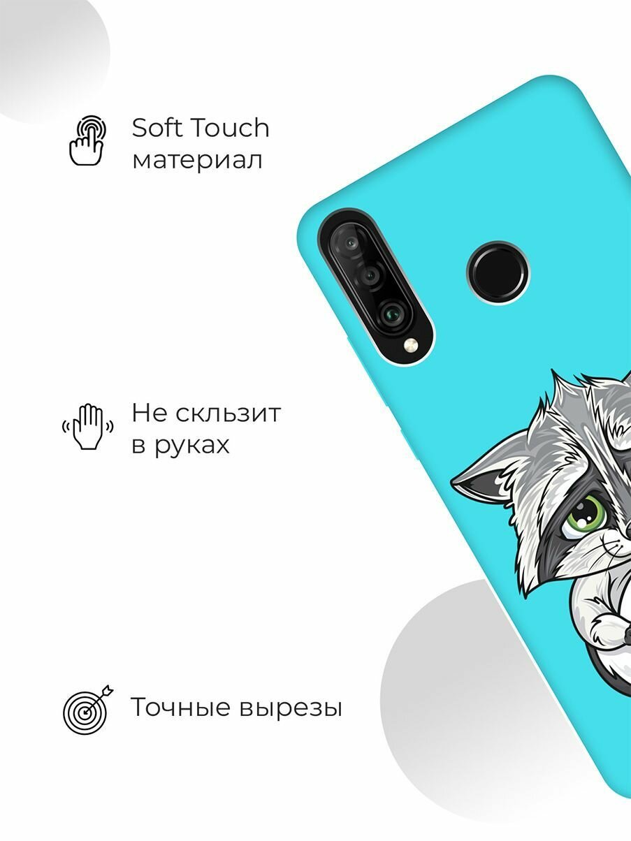Матовый чехол Sad Raccoon для Huawei P30 Lite / Honor 20 Lite / Honor 20s / Хуавей П30 Лайт / Хонор 20 Лайт / Хонор 20s с 3D эффектом бирюзовый информация: