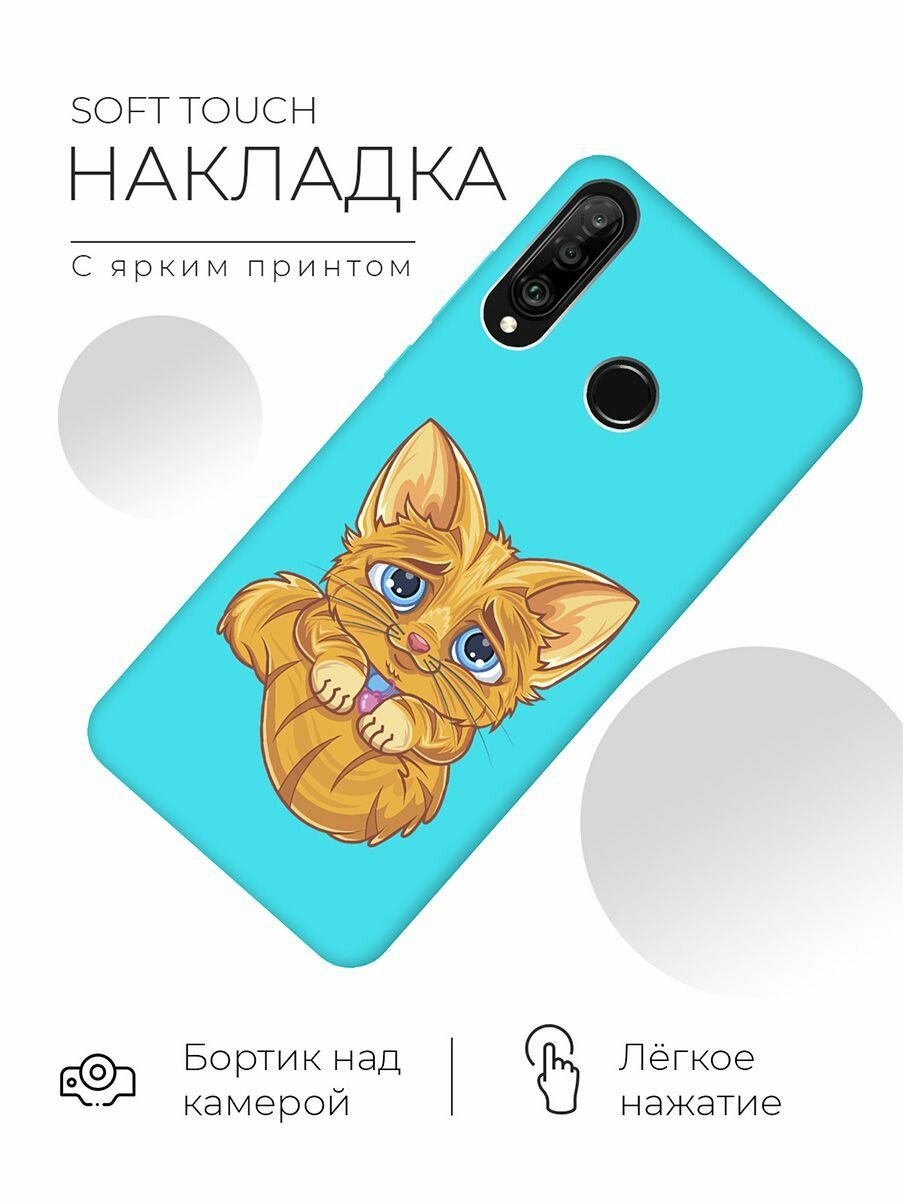 Матовый чехол Sad Cat для Huawei P30 Lite / Honor 20 Lite / Honor 20s / Хуавей П30 Лайт / Хонор 20 Лайт / Хонор 20s с 3D эффектом бирюзовый информация: