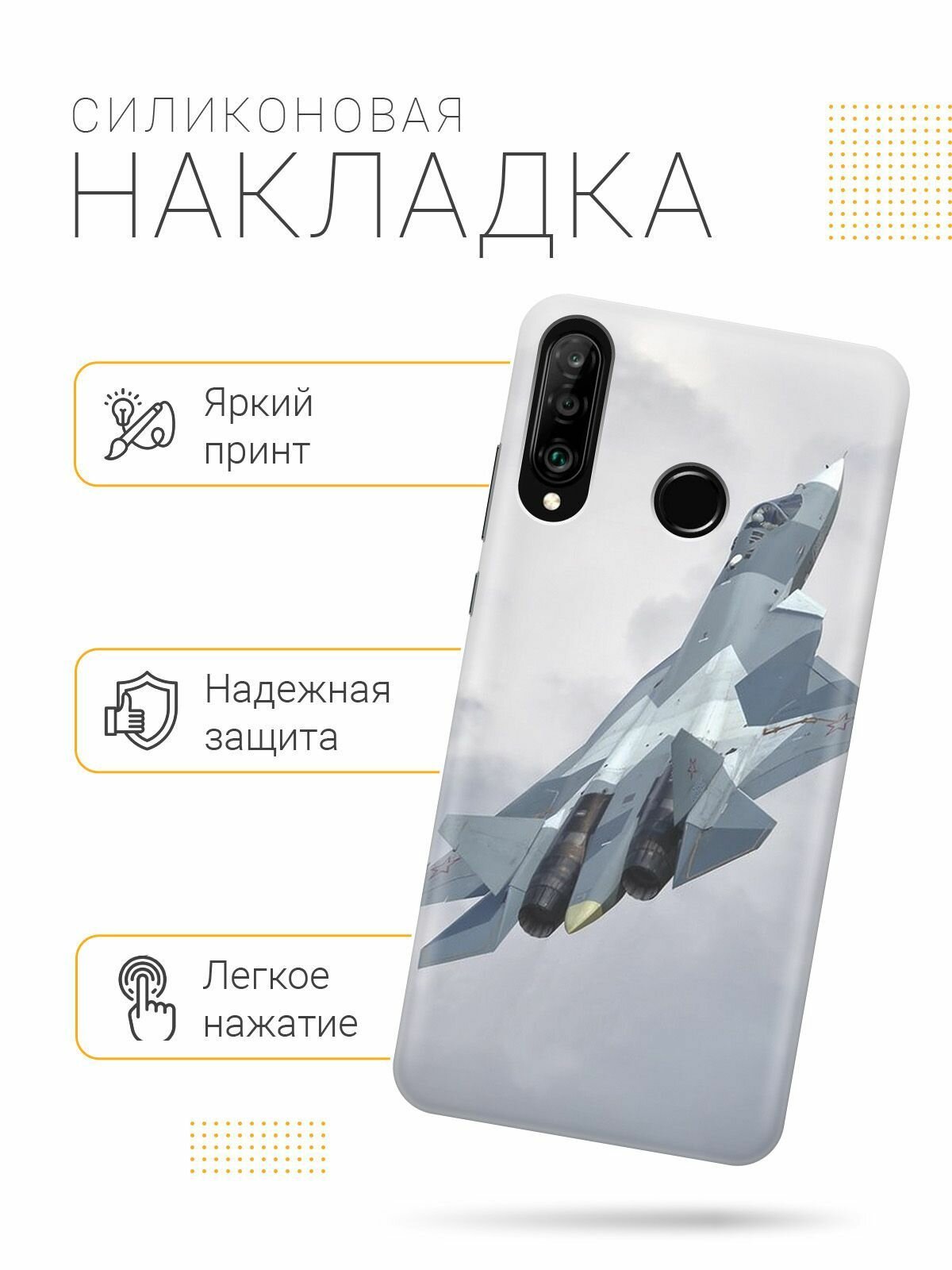 Силиконовый чехол на Honor 20 Lite, 20s, Huawei P30 Lite, Хуавей П30 Лайт, Хонор 20 Лайт, 20s с принтом "Боевой самолет" 459 ₽