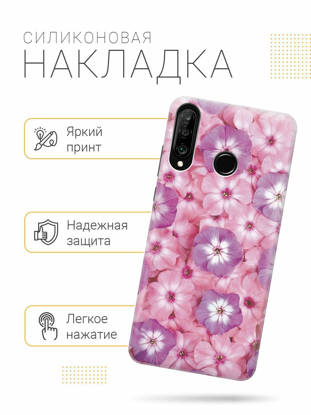 Отзывы на Силиконовый чехол на Honor 20 Lite / 20s / Huawei P30 Lite / Хуавей П30 Лайт / Хонор 20 Лайт / 20s с принтом "Розовые и фиолетовые филаки"