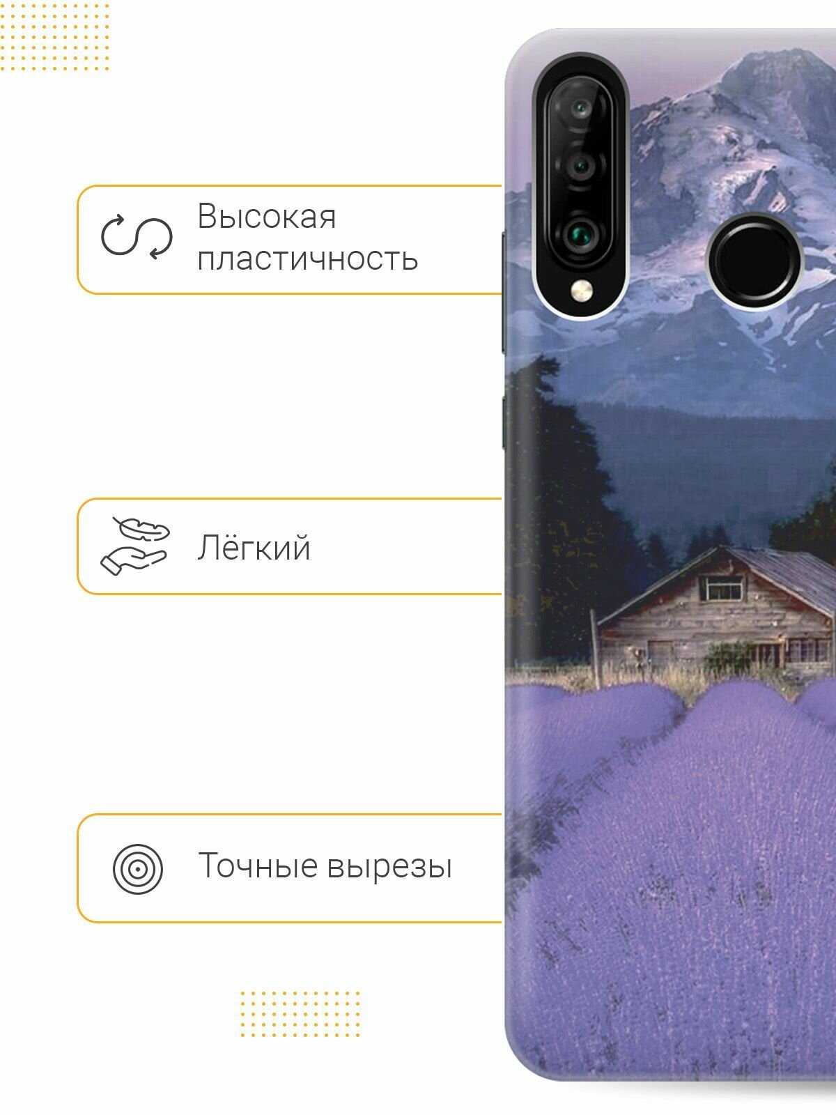 Отзывы на Силиконовый чехол на Honor 20 Lite / 20s / Huawei P30 Lite / Хуавей П30 Лайт / Хонор 20 Лайт / 20s с принтом "Лавандовое поле в горах"