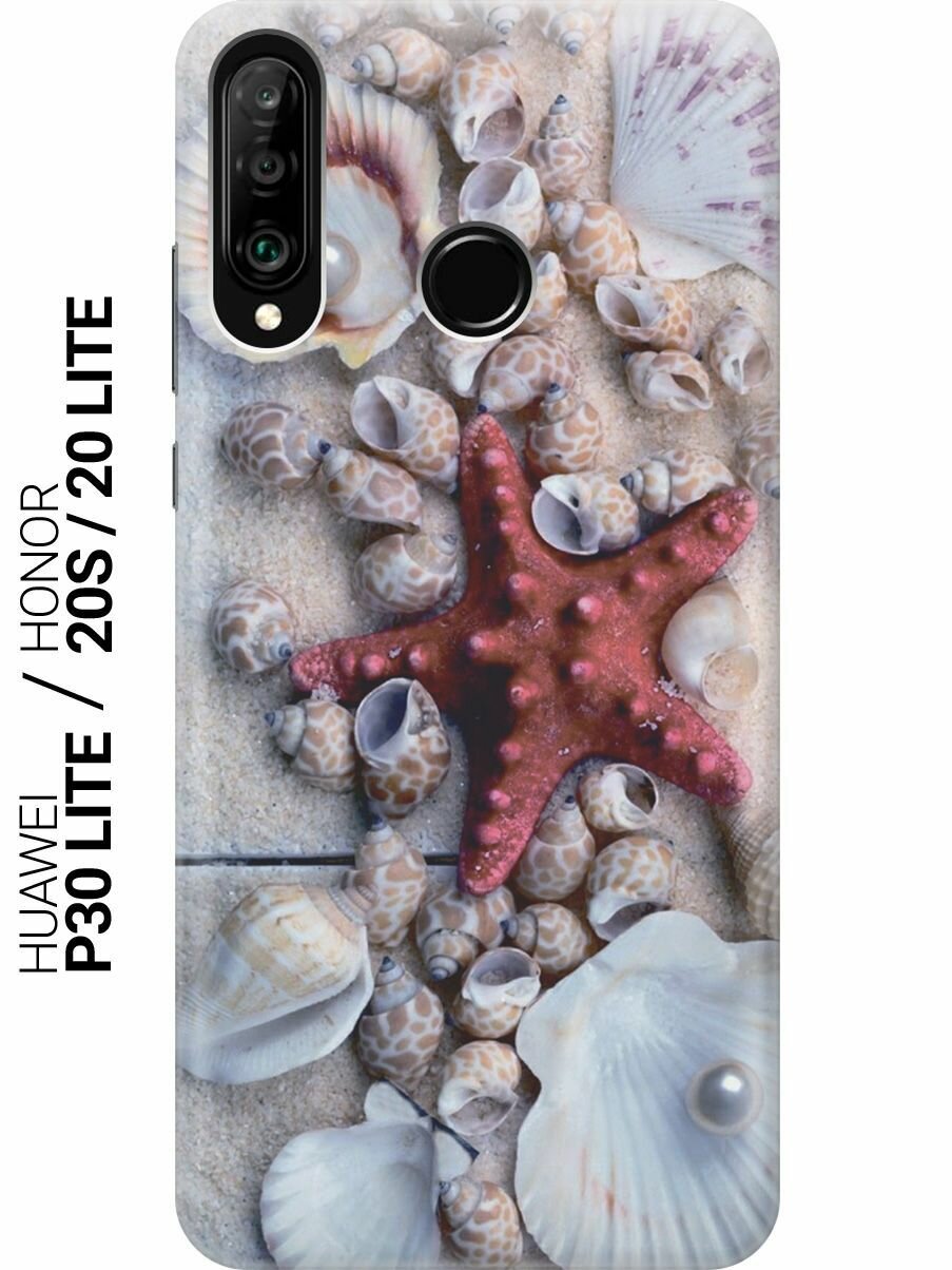 Силиконовый чехол на Honor 20 Lite, 20s, Huawei P30 Lite, Хуавей П30 Лайт, Хонор 20 Лайт, 20s с принтом "Красная морская звезда" 459 ₽