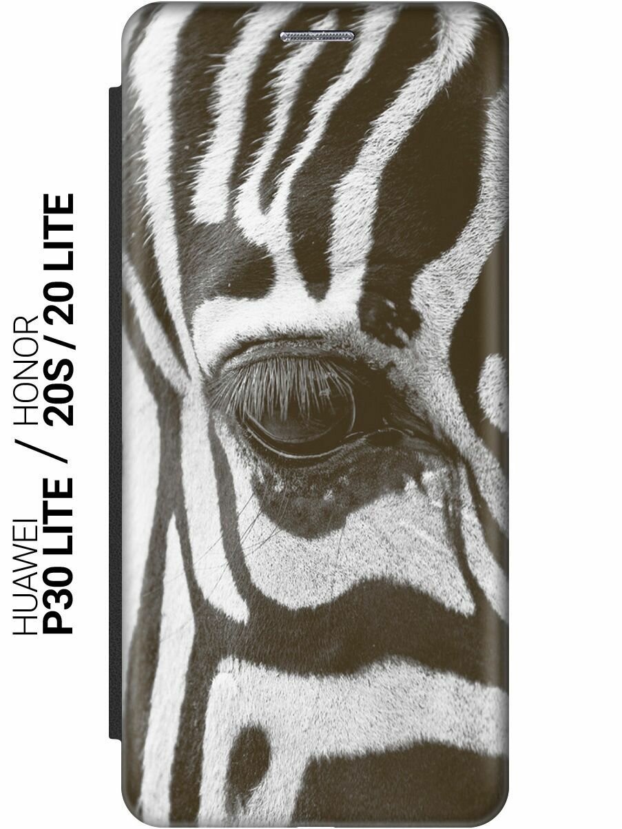 Чехол-книжка на Honor 20 Lite, 20s, Huawei P30 Lite, Хуавей П30 Лайт, Хонор 20 Лайт, 20s c принтом "Глаз зебры" черный 807 ₽