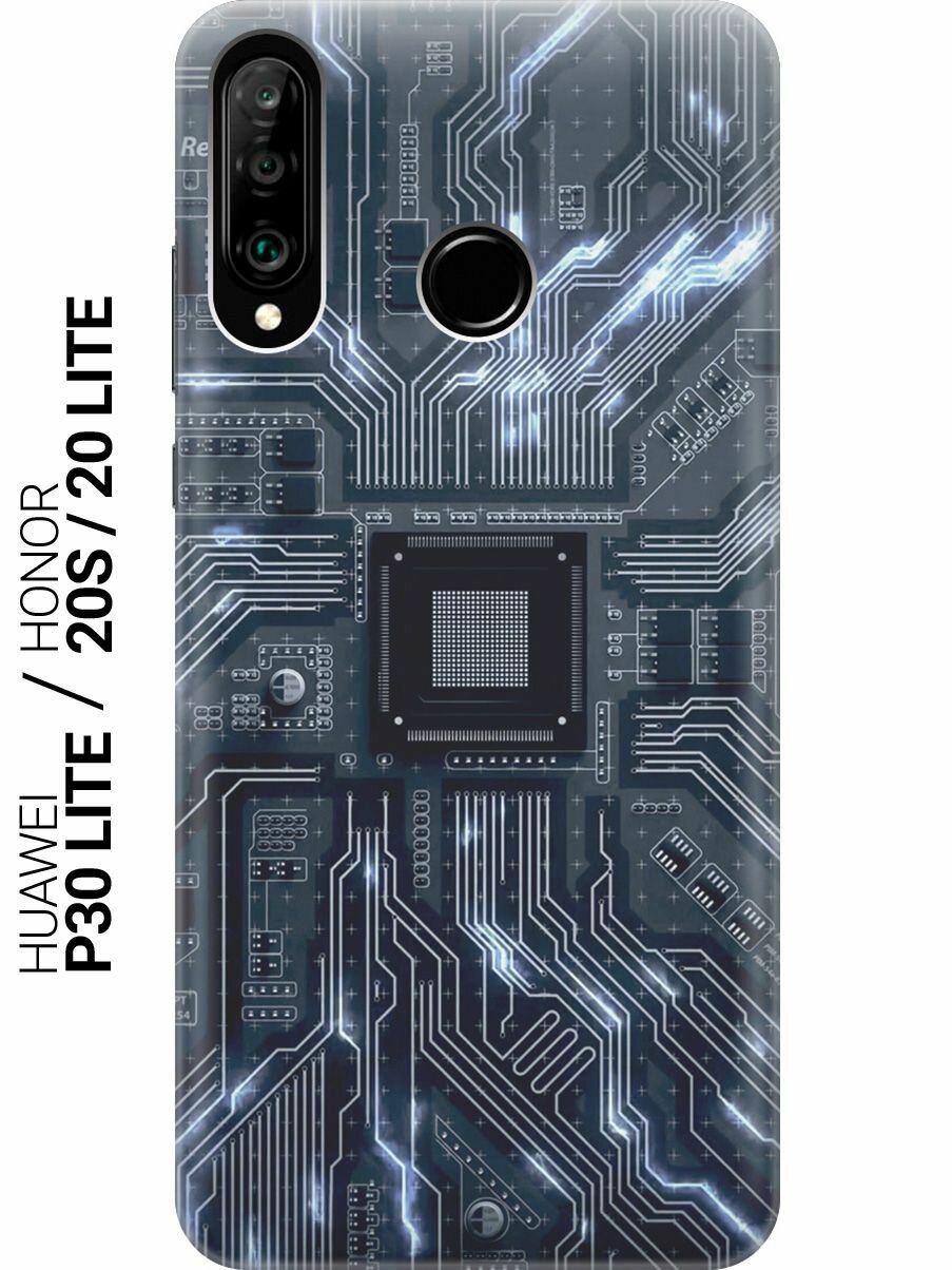Силиконовый чехол на Huawei P30 Lite, Honor 20 Lite, Honor 20s, Хуавей П30 Лайт, Хонор 20 Лайт, Хонор 20s с принтом "Синяя микросхема" 459 ₽