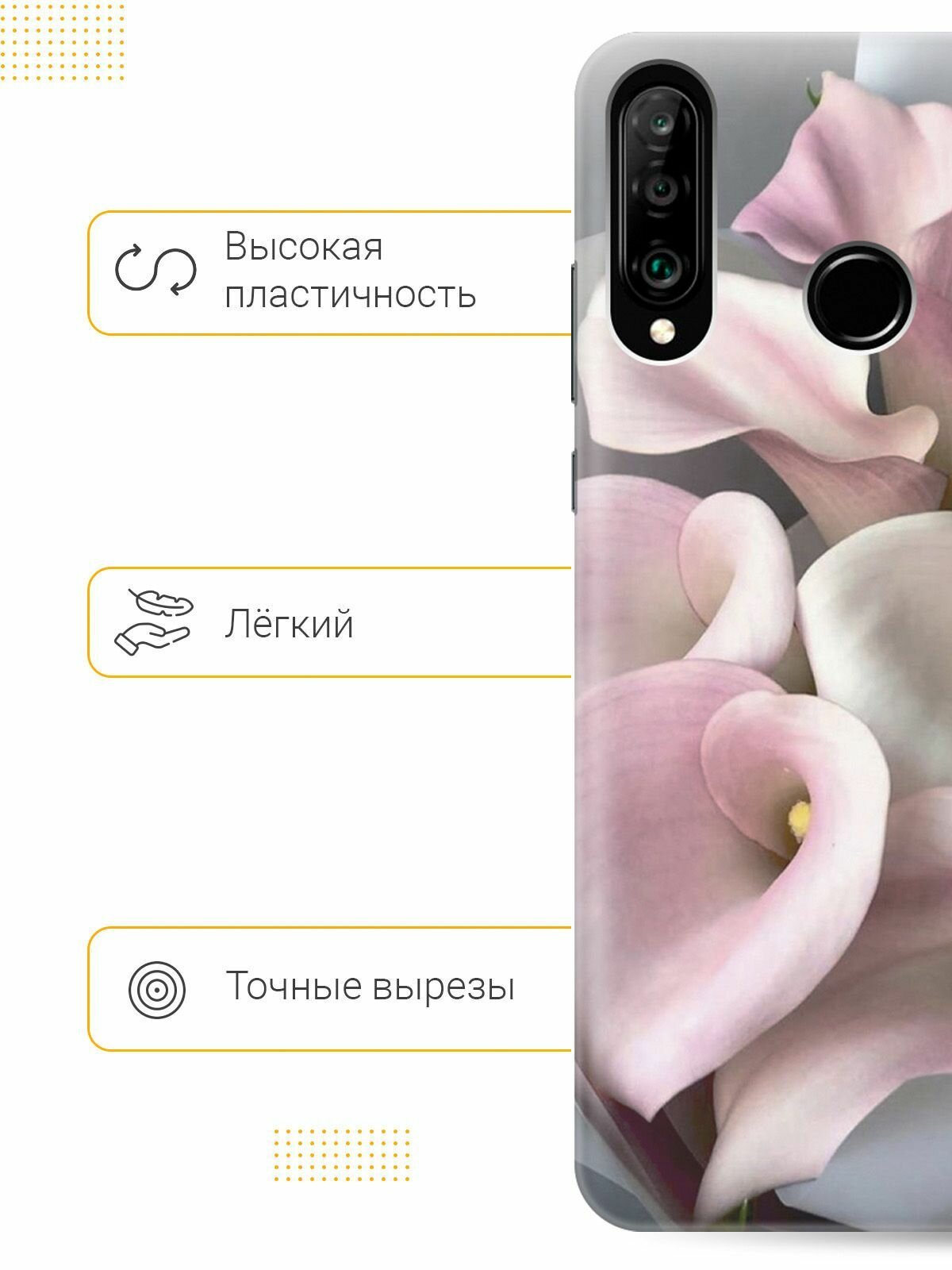 Силиконовый чехол на Huawei P30 Lite / Honor 20 Lite / Honor 20s / Хуавей П30 Лайт / Хонор 20 Лайт / Хонор 20s с принтом "Розовые каллы" информация: