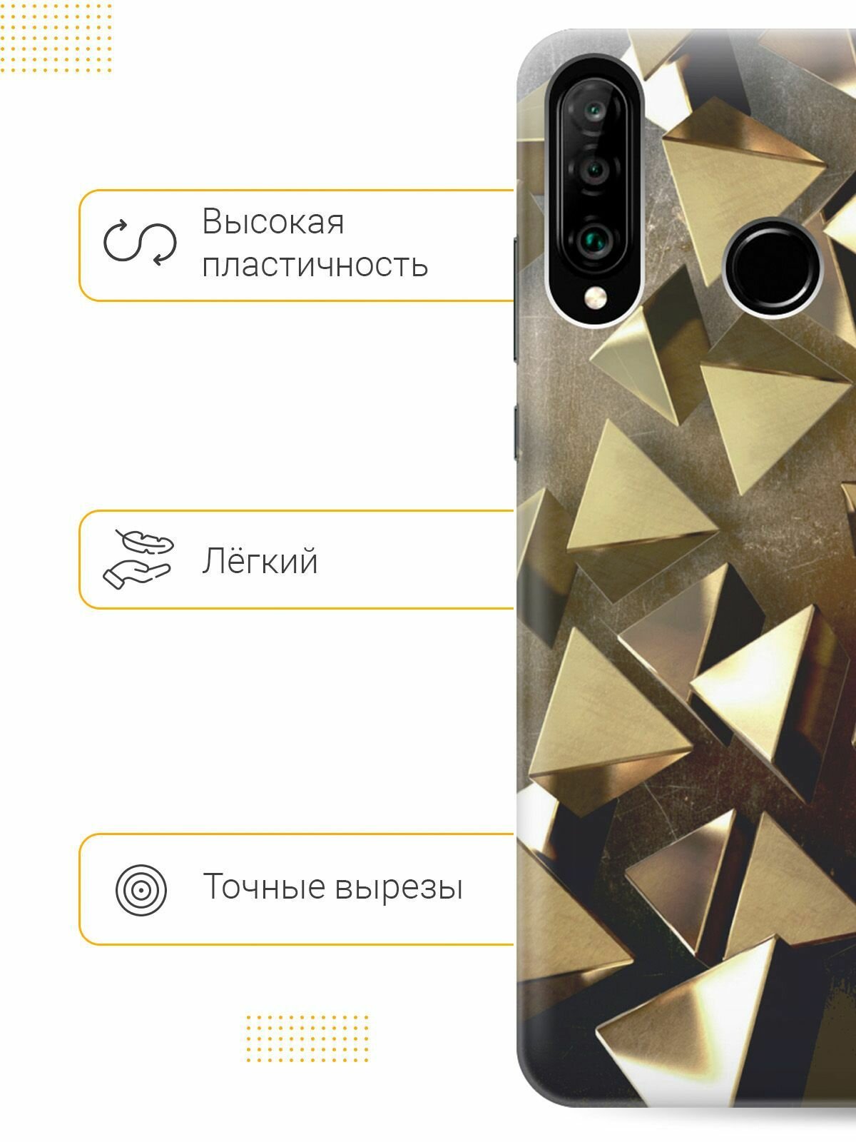 Отзывы на Силиконовый чехол на Huawei P30 Lite / Honor 20 Lite / Honor 20s / Хуавей П30 Лайт / Хонор 20 Лайт / Хонор 20s с эффектом блеска "Золотые фигуры"