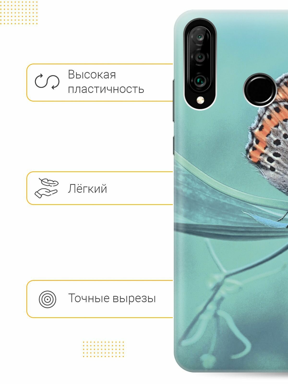 Силиконовый чехол на Huawei P30 Lite / Honor 20 Lite / Honor 20s / Хуавей П30 Лайт / Хонор 20 Лайт / Хонор 20s с эффектом блеска "Бабочка на листке" информация: