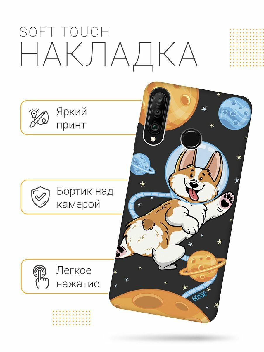 Отзывы на Матовый Soft Touch силиконовый чехол на Honor 20 Lite / 20s / Huawei P30 Lite / Хуавей П30 Лайт / Хонор 20 Лайт / 20s с 3D принтом "CosmoCorgi" черный