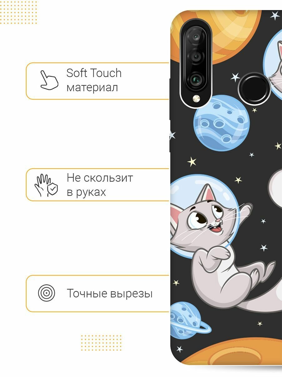 Отзывы на Матовый Soft Touch силиконовый чехол на Honor 20 Lite / 20s / Huawei P30 Lite / Хуавей П30 Лайт / Хонор 20 Лайт / 20s с 3D принтом "CosmoCats" черный