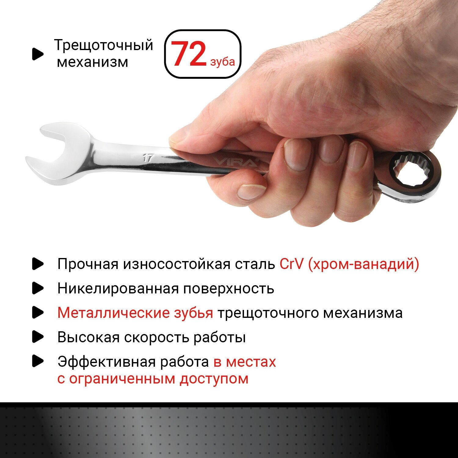 Ключ комбинированный с храповым механизмом набор из 6 VIRA информация: