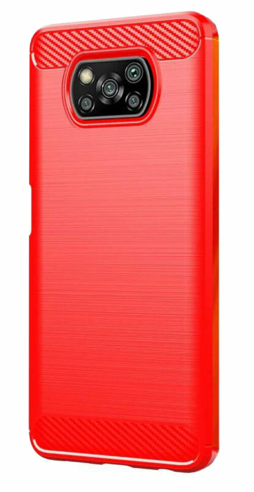 Накладка силиконовая для Poco X3 NFC / X3 Pro под карбон и сталь красная информация: