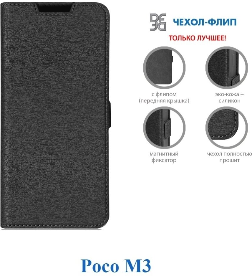 Чехол (флип-кейс) DF poFlip-03, для Xiaomi Poco M3, черный [df poflip-03 (black)] информация: