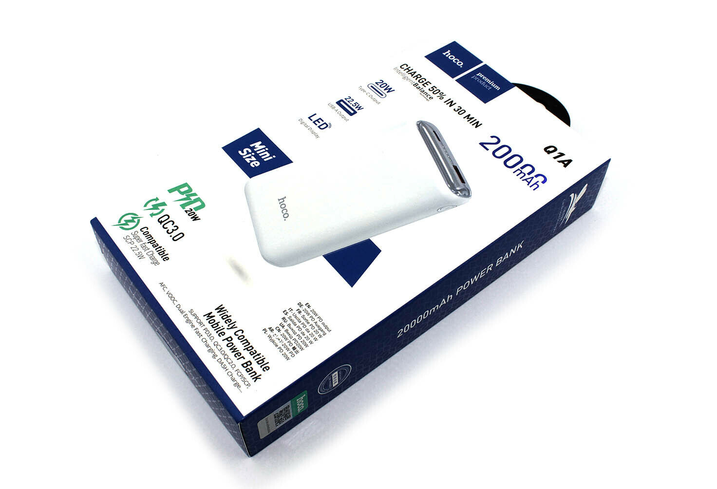 Внешний аккумулятор Powerbank HOCO Q1A Kraft QC3.0, PD20, USB-A 22.5W, 20000mAh, белый информация: