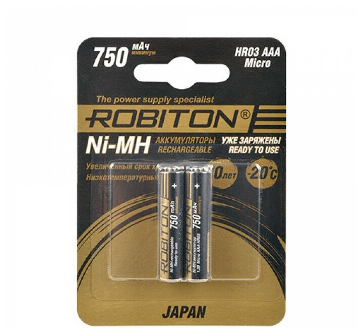 Аккумуляторы с низким саморазрядом на 750мАч 1,2В тип ААА (блистер 2шт - цена за блистер) - HR-4UTG JAPAN 750мАч BL2 (ROBITON) (код заказа 15189 ) информация: