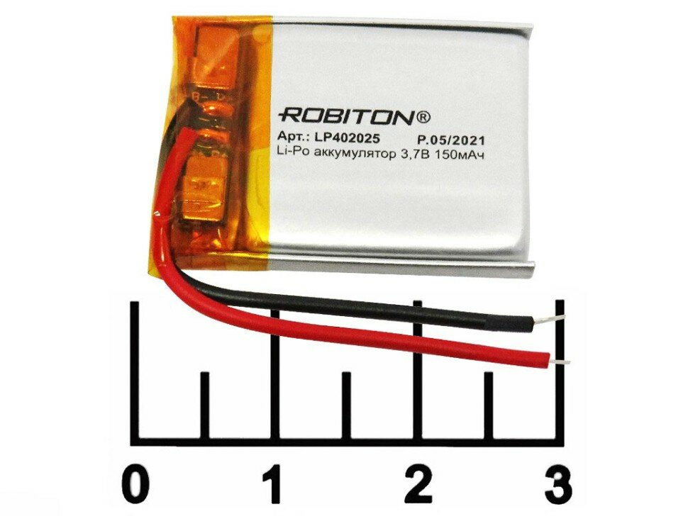 Отзывы на Аккумулятор литий-ионный полимер ROBITON LP402025, Li-Pol, 3.7 В, 150 мАч, призма со схемой защиты