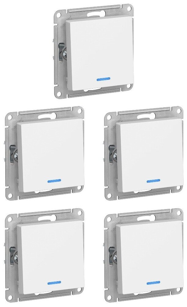 Выключатель одноклавишный (комплект 5 шт) Schneider Electric AtlasDesign с подсветкой, механизм белый переключатель информация: