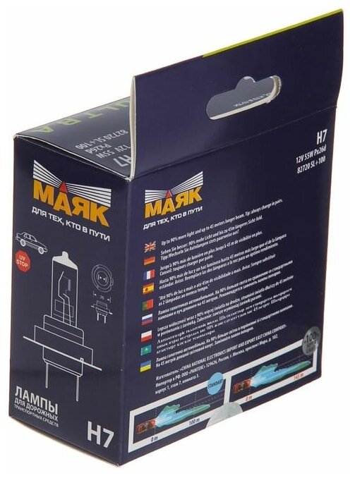 Лампа галогенная H7 12V 55W "Маяк" (Super Light +100%) (2 шт.) информация: