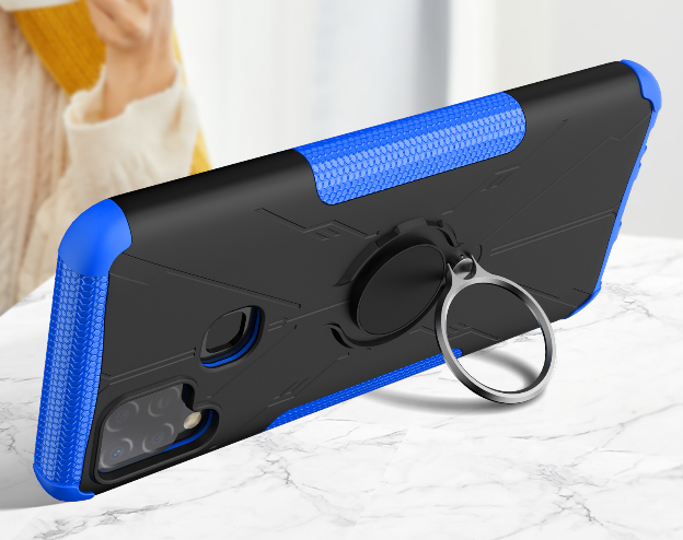 Противоударный чехол на Tecno Pova Neo 3 (LH6n) (6.82"), серебро. Кольцо-держатель и магнитное крепление, яркие пластиковые защитные вставки