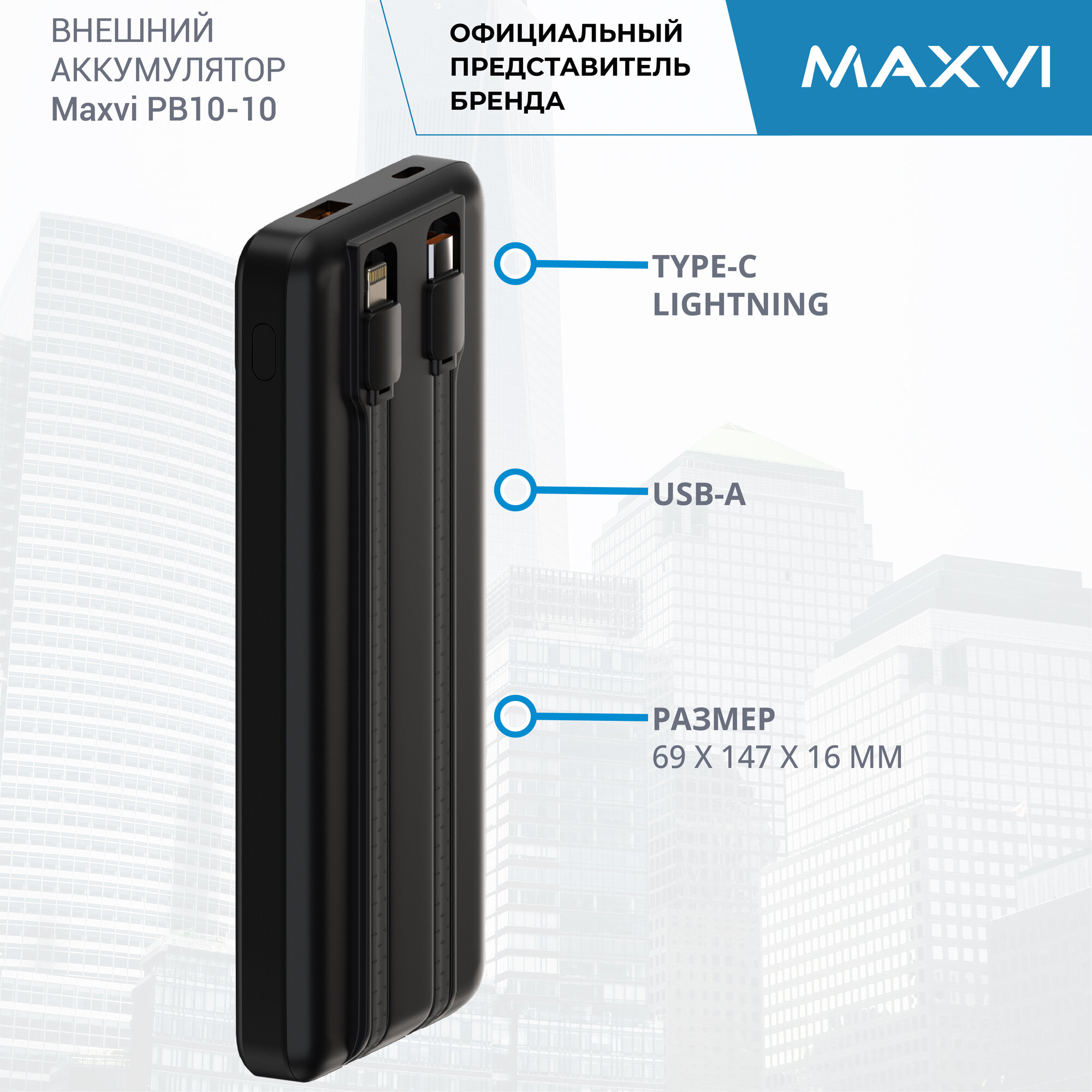 Внешний аккумулятор Maxvi PB10-01 10000mAh 2A Черный информация: