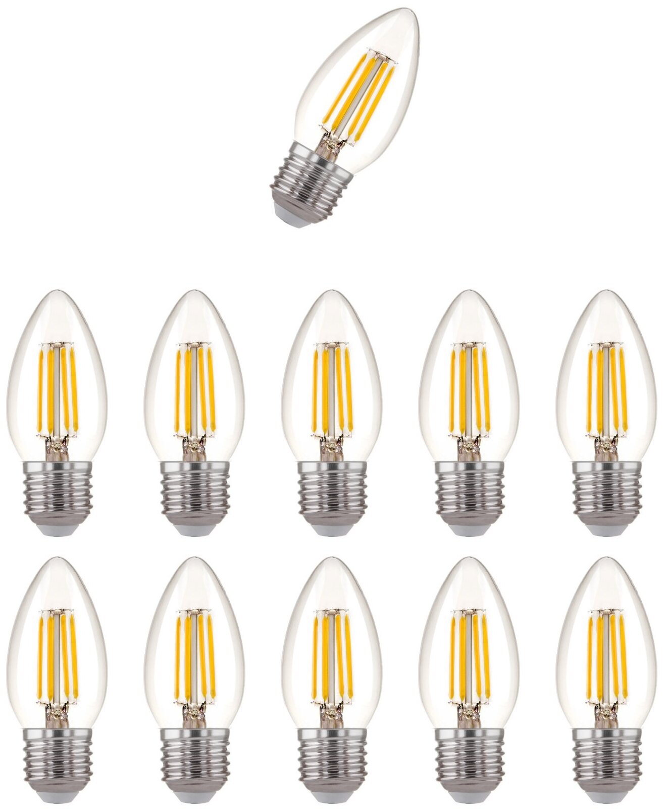 10 цен на Лампочка светодиодная Osram филаментная стекло Свеча B E27 6Вт 220В 806Лм 6500К Холодный белый, упаковка 10шт