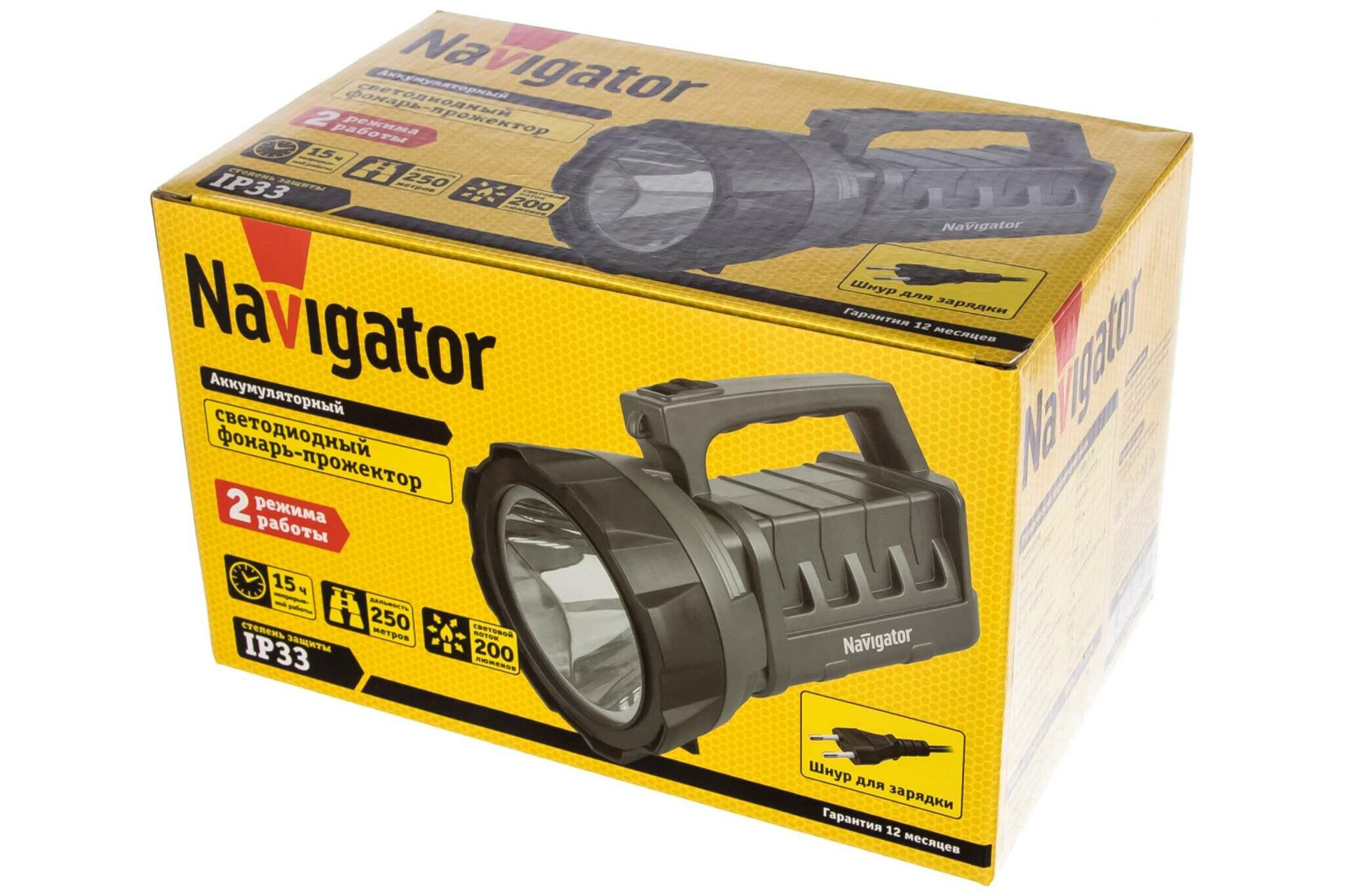 Фонарь Navigator 71 596 NPT-SP14-ACCU прожектор 3Вт LED 200Лм АКБ 3А.ч 19709 434044 информация: