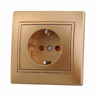 10 цен на Розетка 1-м СП Mira 16А IP20 с заземл. защ. шторки со вставкой керамика зол. метал. LEZARD 701-1313-124