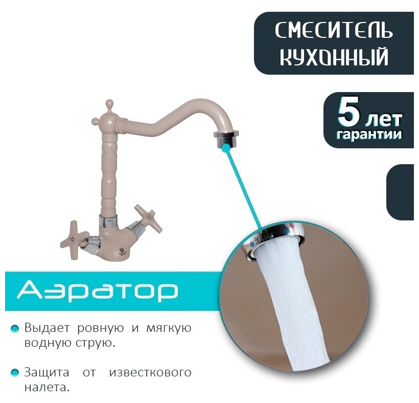 Смеситель BACH для кухни кер. п/гайку 88744351GY хром-бежевый информация: