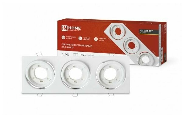 10 цен на Светильник встраиваемый GX53R-3ST 3RW металл под лампу GX53 230В поворотный тройной белый IN HOME (арт. 4690612021577) ( 1 шт)