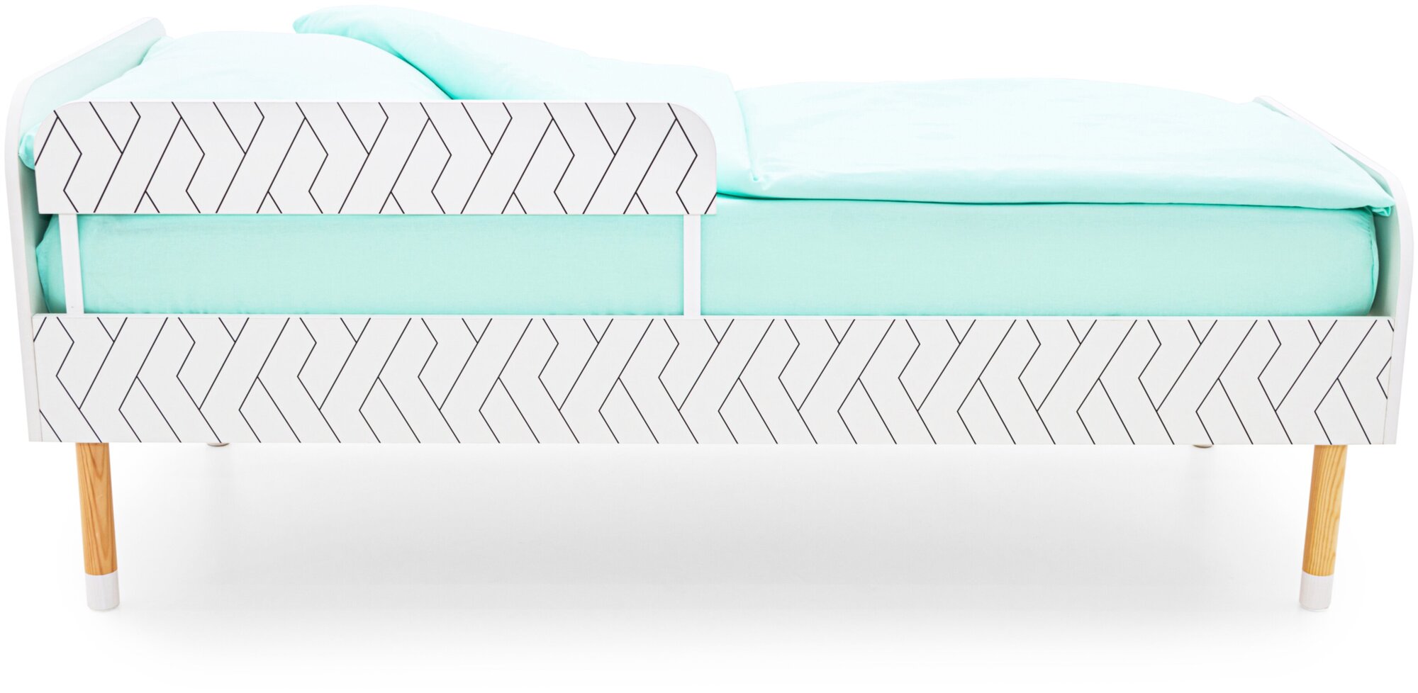 Деревянная кровать Stumpa Классика с бортиком Бельмарко "Геометрия Зигзаги"