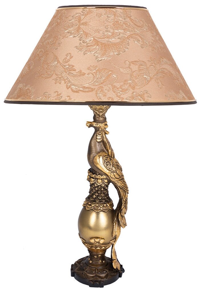 Настольная лампа BOGACHO Павлин бронзовая со светло-коричневым абажуром Каледония информация: